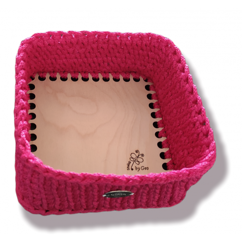 Πλεκτό καλαθάκι με ξύλινο πάτο για την αποθήκευση των προϊόντων του μωρού.