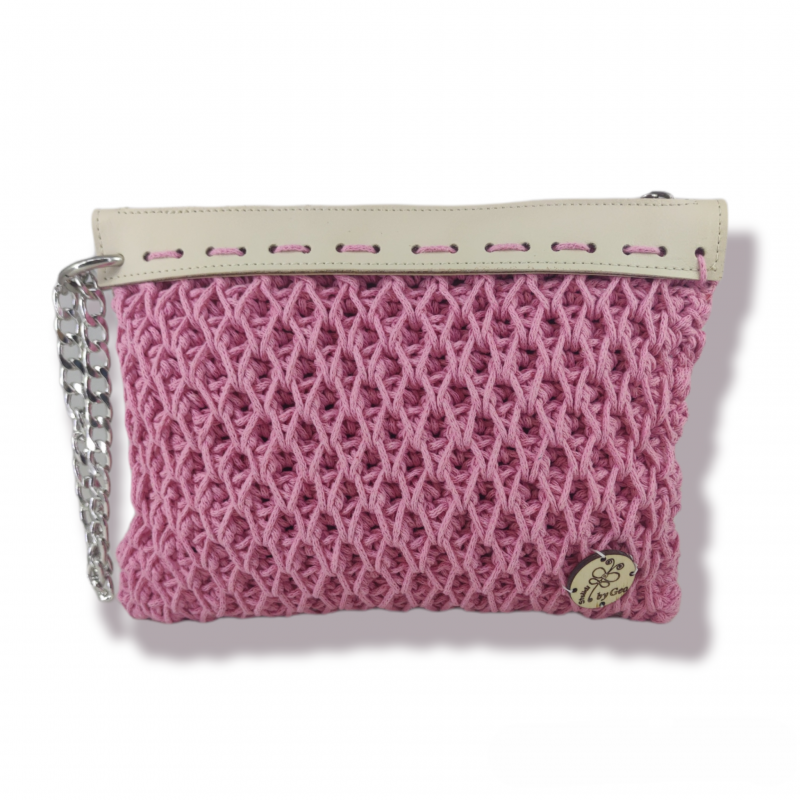 Ετικέτες: Χειροποίητη πλεκτή τσάντα ροζ χρώμα ασημένια μεταλλικά στοιχεία