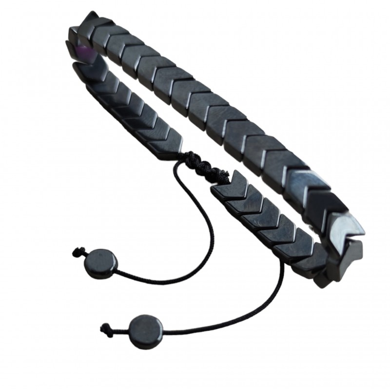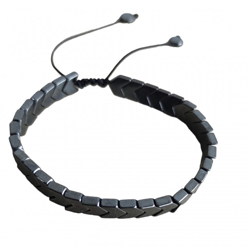 Βραχιόλι με ημιπολύτιμο λίθο αιματίτη σε γκρι σκούρο. Μπορεί να φορεθεί και από άνδρα και από γυναίκα .Το μέγεθος του προσαρμόζεται