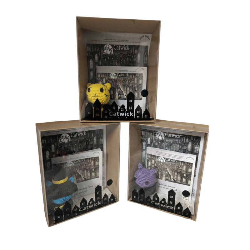 Αποκτήστε μια μοναδική συλλογή από τις πλεκτές φιγούρες των αγαπημένων γατών της Catwick, που συνοδεύονται από τη συναρπαστική ιστορία τους. Η κάθε γάτα είναι χειροποίητη, φτιαγμένη με προσοχή και μεράκι από βαμβακερό νήμα, και αποτελεί το ιδανικό δώρο για μικρούς και μεγάλους λάτρεις της μαγείας και της φαντασίας!