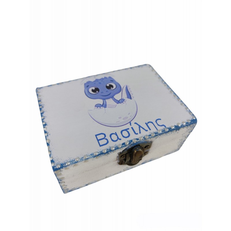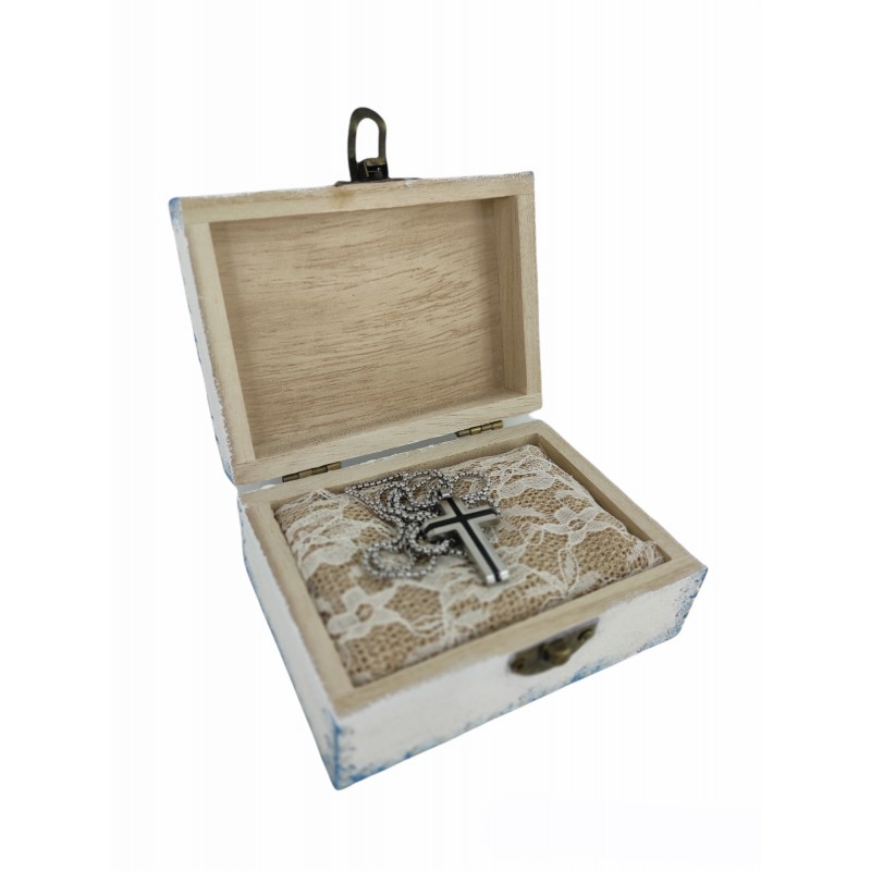 Ξύλινο κουτί με μαξιλαράκι για τον βαπτιστικό Σταυρό με το θέμα της επιλογής σας και το όνομα του παιδιού