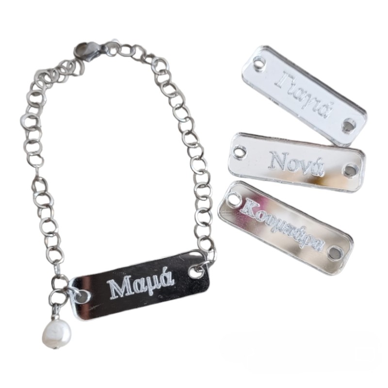Ετικέτες: Βραχιόλι με ασημένιο mirror plexiglass Ατσάλινες αλυσίδες. Μαργαριτάρι Αν θέλεις να γράψουμε κάτι άλλο στείλε μας μήνυμα