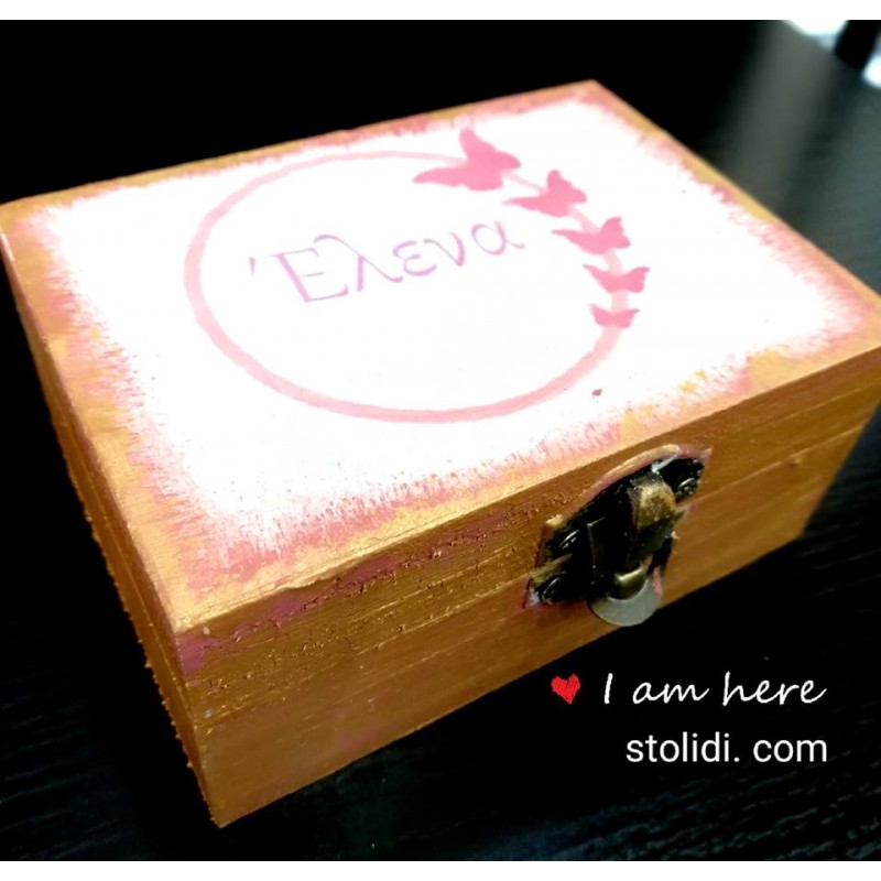 Ξύλινο κουτί για τον βαφτιστικό Σταυρό με το όνομα του παιδιού