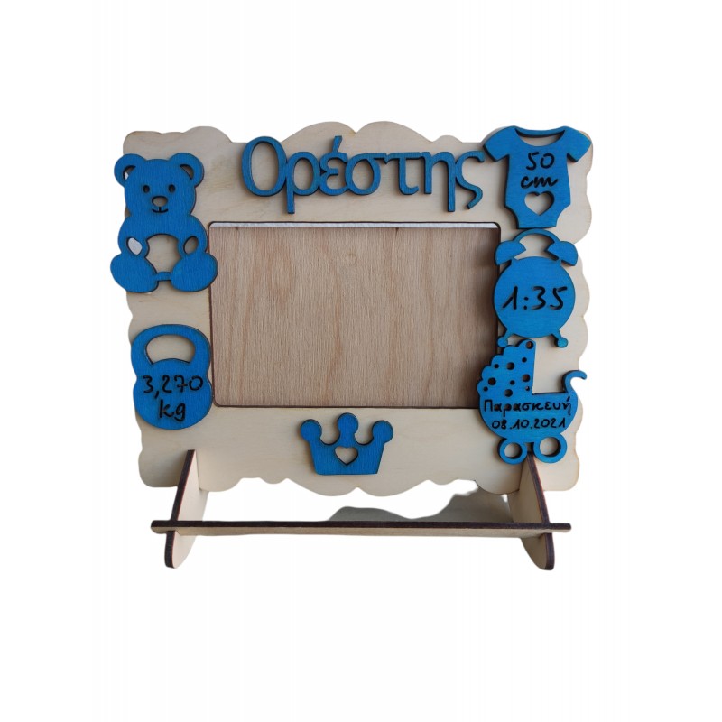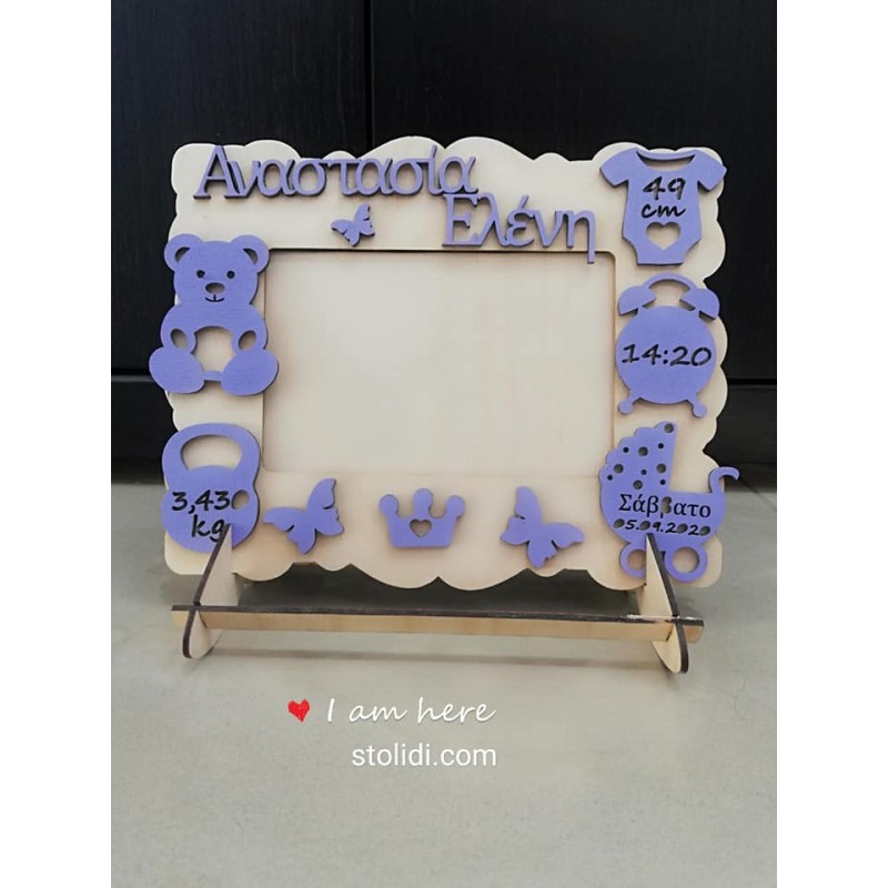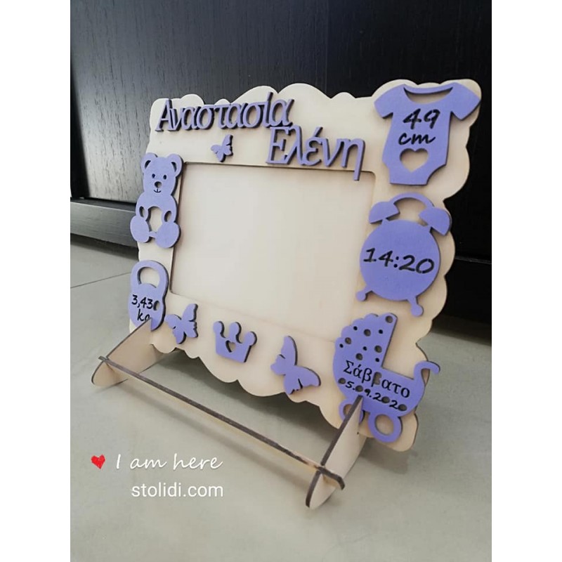 Ξύλινη κορνίζα για την πρώτη φωτογραφία του μωρού σας με τα στοιχεία γέννησης