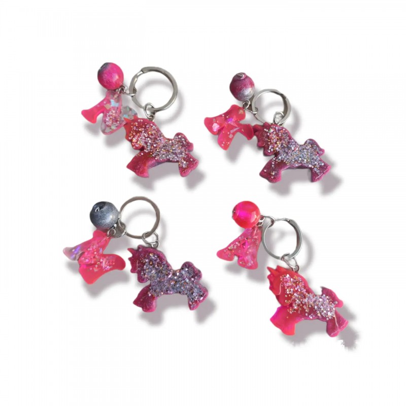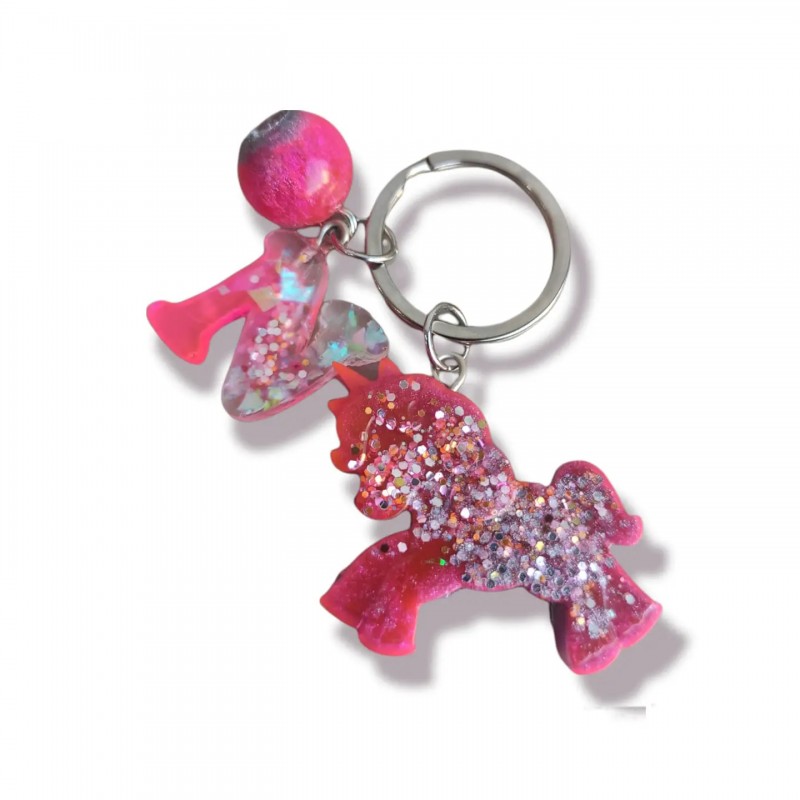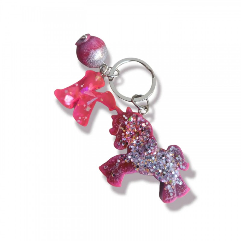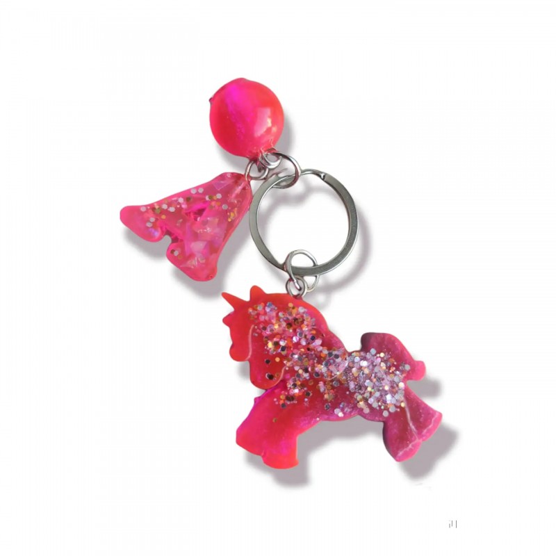 Μπρελόκ μονοκερος χειροποίητο με σμάλτο και υγρό γυαλί σε ροζ απόχρωση και το μονόγραμμα της επιλογής σου