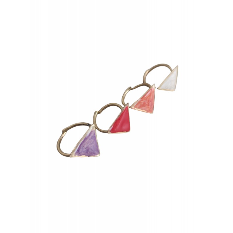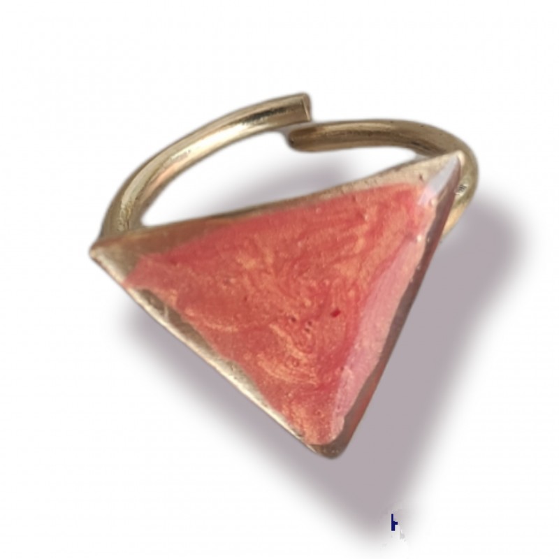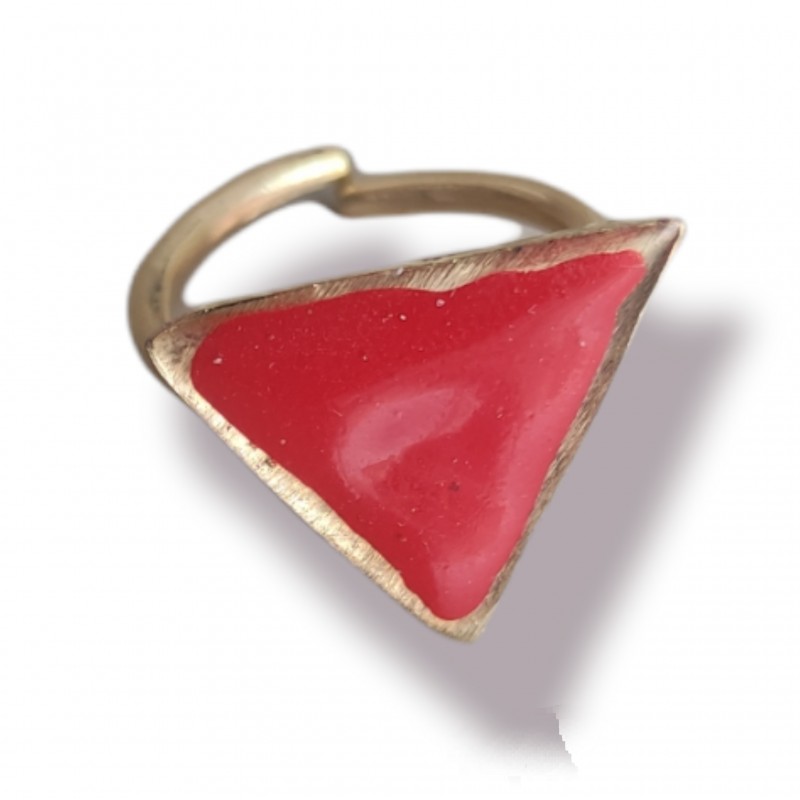Χειροποίητα δαχτυλίδια τρίγωνο από μέταλλο ορείχαλκου βαμμένα με σμάλτο και υγρό γυαλί