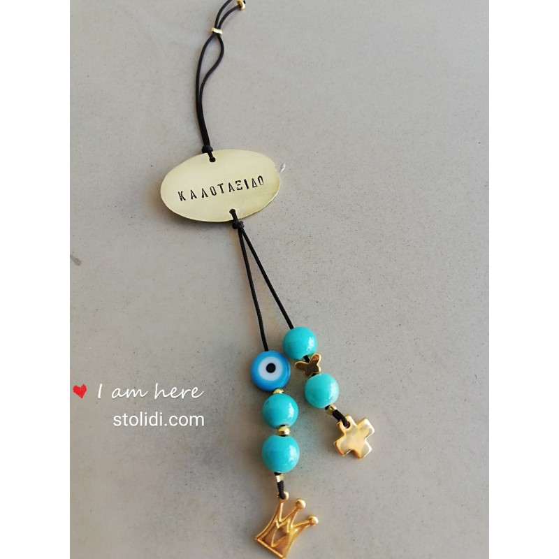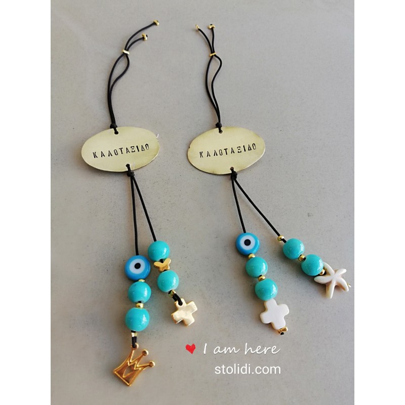 Χειροποίητα μπρελόκ αυτοκινήτου με την ευχή " Καλοτάξιδο"