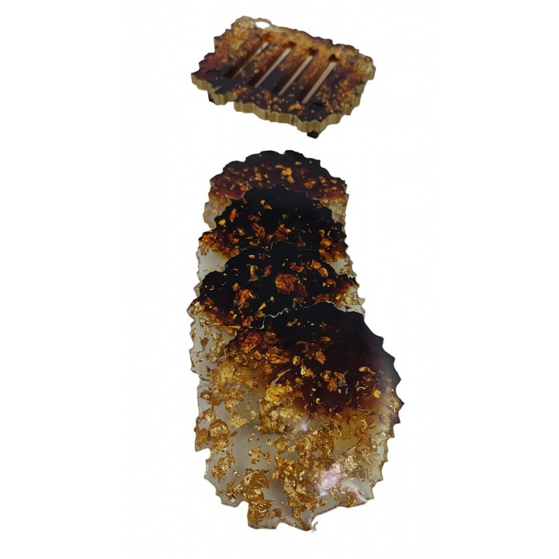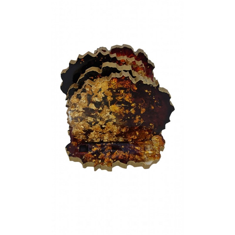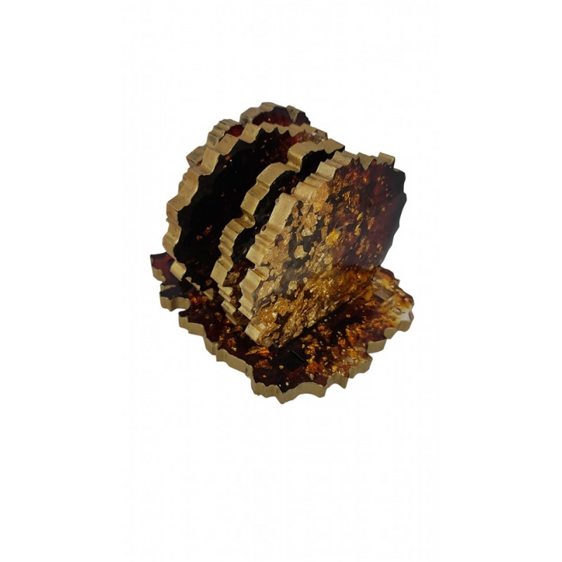 Χειροποίητα σουβέρ από υγρό γυαλί, καφέ χρώμα και φύλλα χρυσού. Διαθέτει 4 κομμάτια σουβέρ