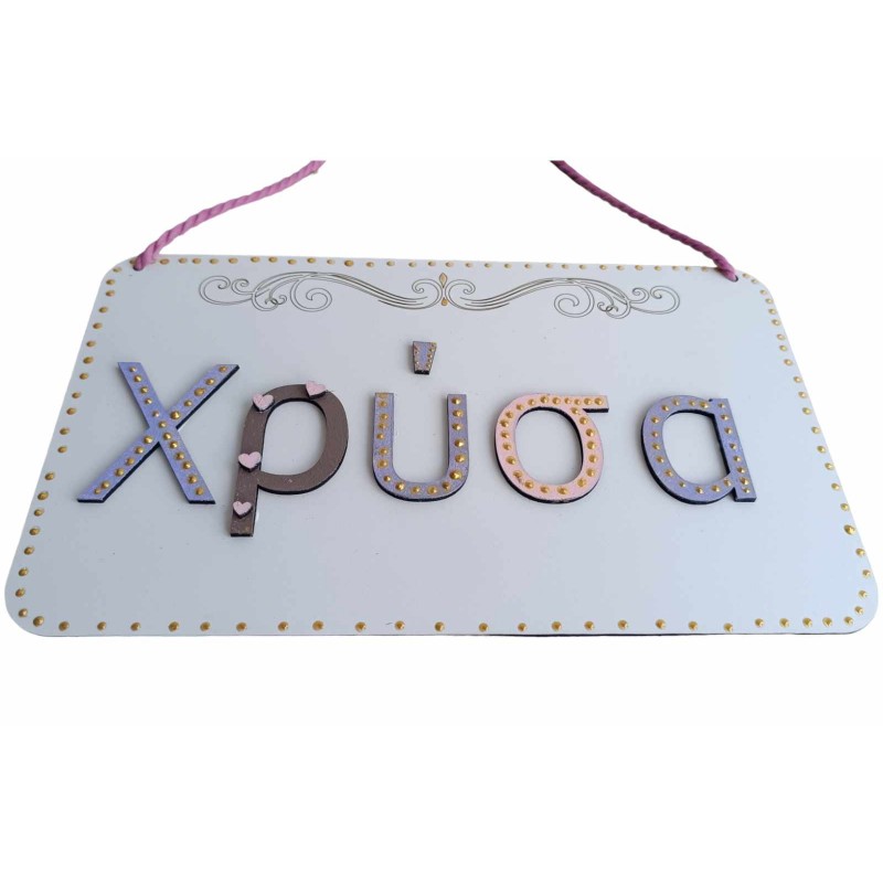 Ξ΄΄υλινη πινακίδα με όνομα είτε για την πόρτα του υπνοδωματίου είτε για β΄άπτιση
