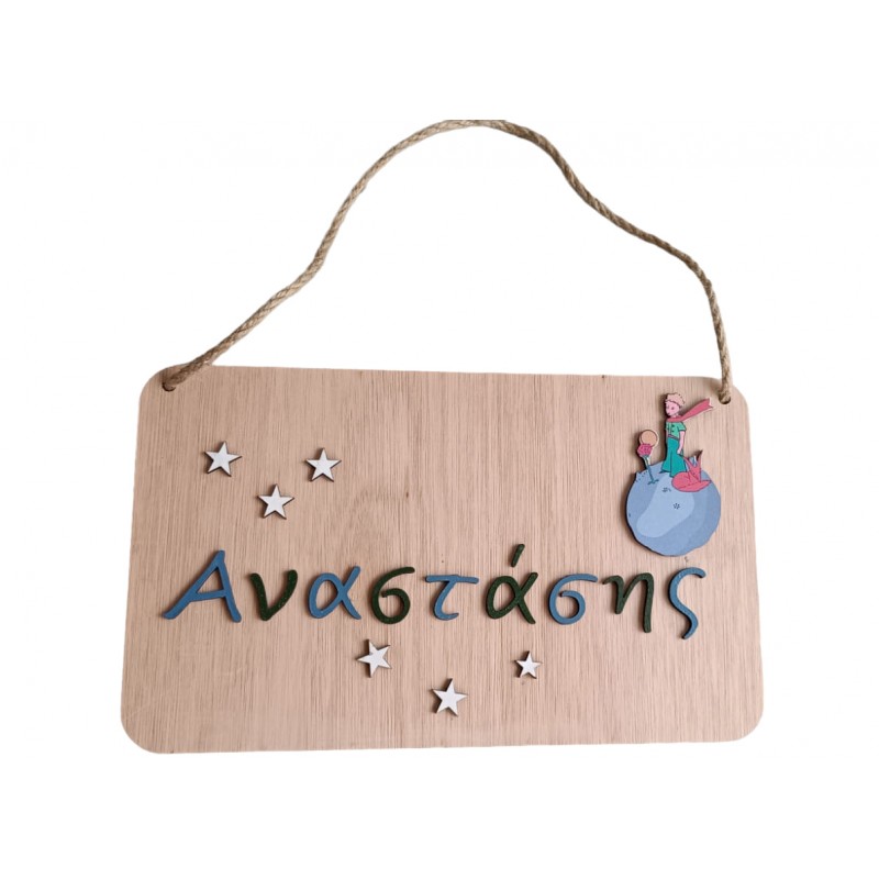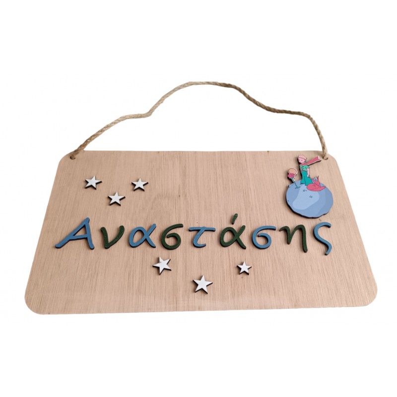 Ξύλινη πινακίδα με όνομα και θέμα τον μικρό πρίγκιπα
