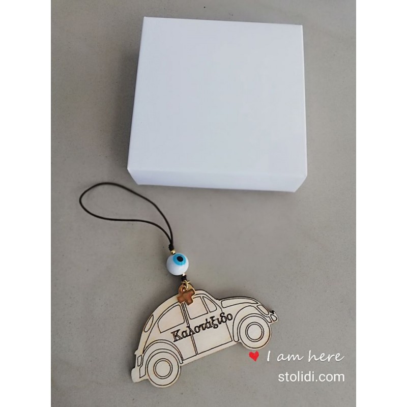 Ξύλινο μπρελόκ σκαραβαίος με χαραγμένη τη λέξη καλοτάξιδο