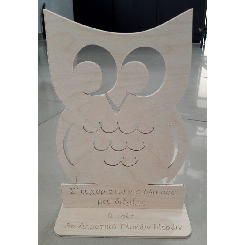 Ξύλινη κουκουβάγια με χαραγμένο το μήνυμα της επιλογής σας
