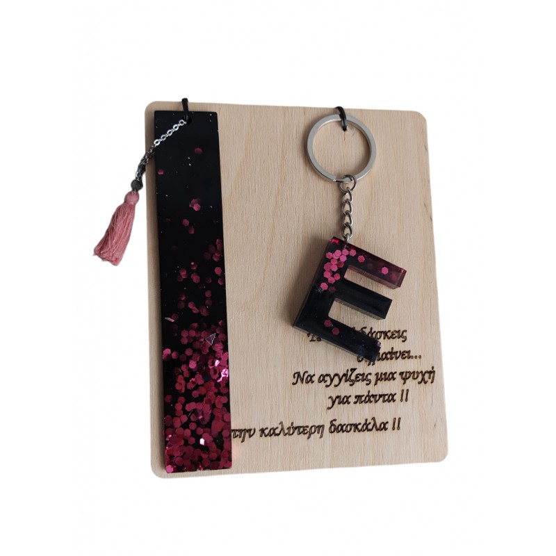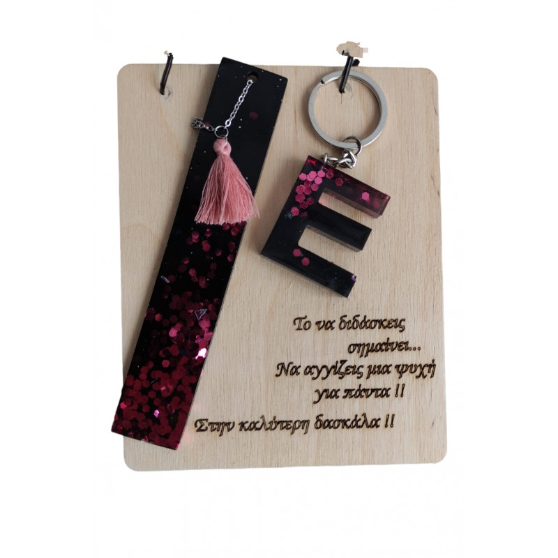 Πακέτο δώρου για την δασκάλα που περιλαμβάνει σελιδοδείκτη και το μπρελόκ μονόγραμμα της επιλογής σου