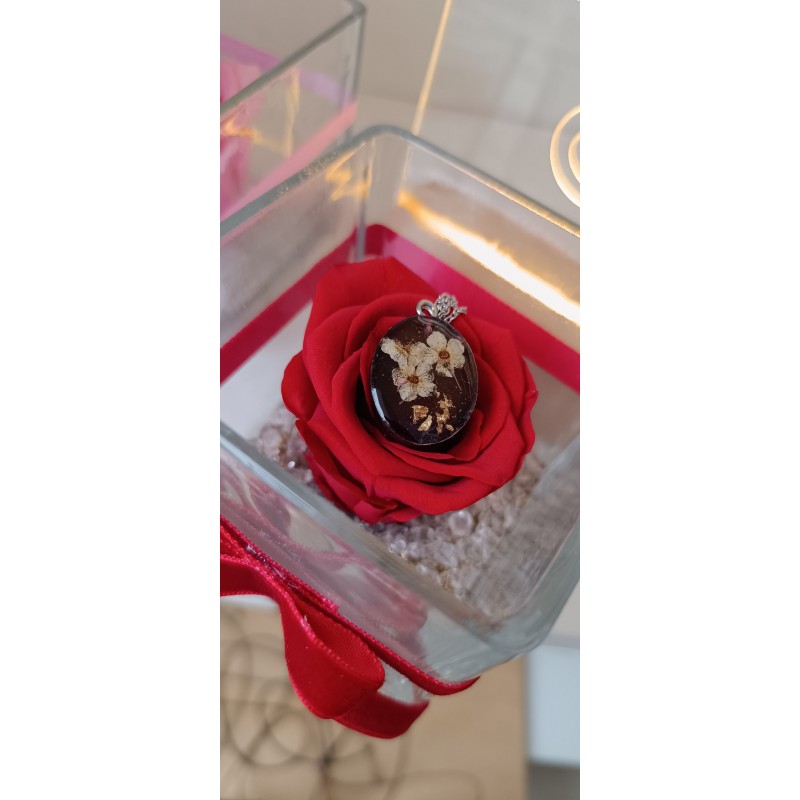 Το τριαντάφυλλο Forever σε κόκκινο, σύμβολο αληθινής αγάπης, συνοδεύεται από το χειροποίητο μενταγιόν σε χρώμα Κοκκίνου κρασιού, που φυλάσσει μέσα του την ομορφιά της λευκής δαντέλας. Ιδανικό για την ημέρα του Αγίου Βαλεντίνου, για να δείξετε σε εκείνη πόσο ξεχωριστή είναι για εσάς.