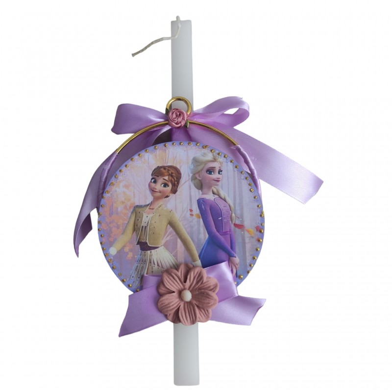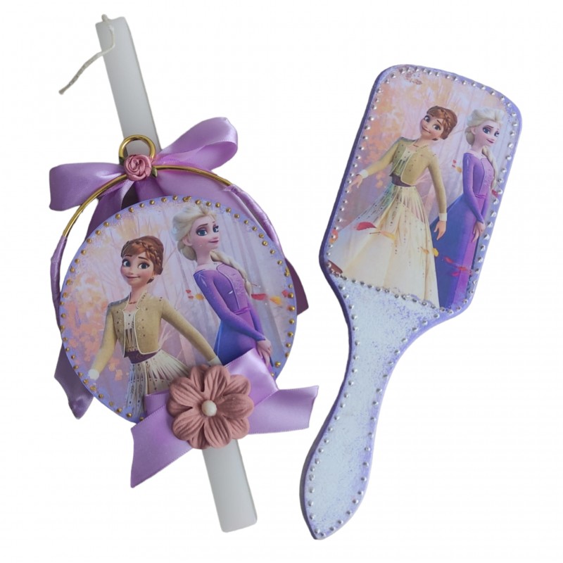 Σετ λαμπάδα 30 εκ με κορνιζάκι σε μεταλλικό χρυσό κρίκο και χτένα με θέμα frozen