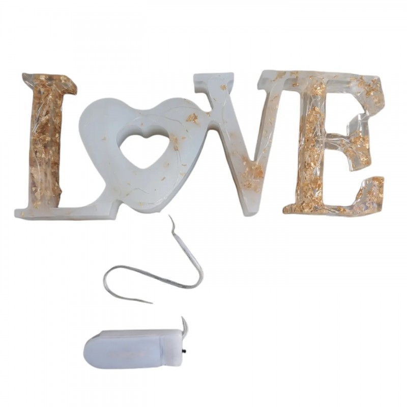 Φωτιστικό επιδαπέδιο με την λέξη love φύλλα χρυσού και λευκό χρώμα και μηχανισμό led