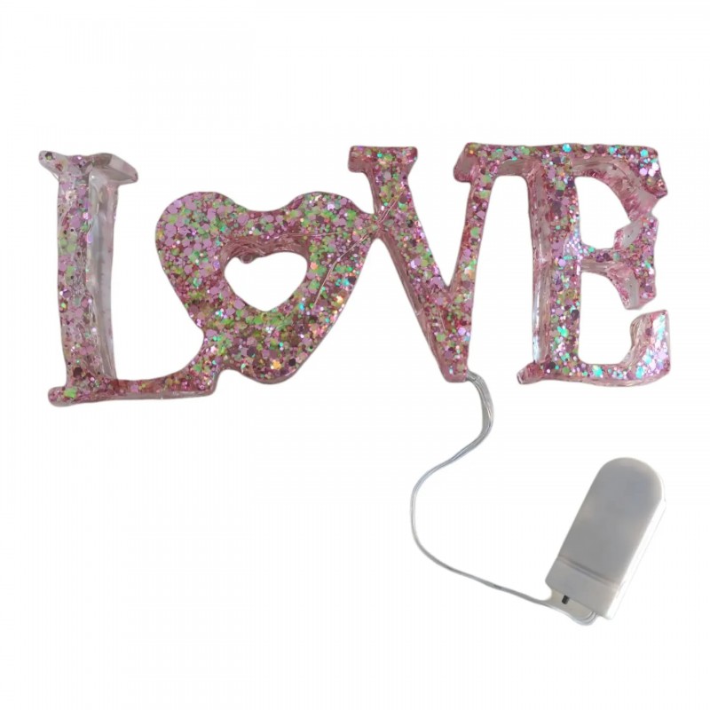 Φωτιστικό επιδαπέδιο με την λέξη love γκλίτερ ροζ και μηχανισμό led