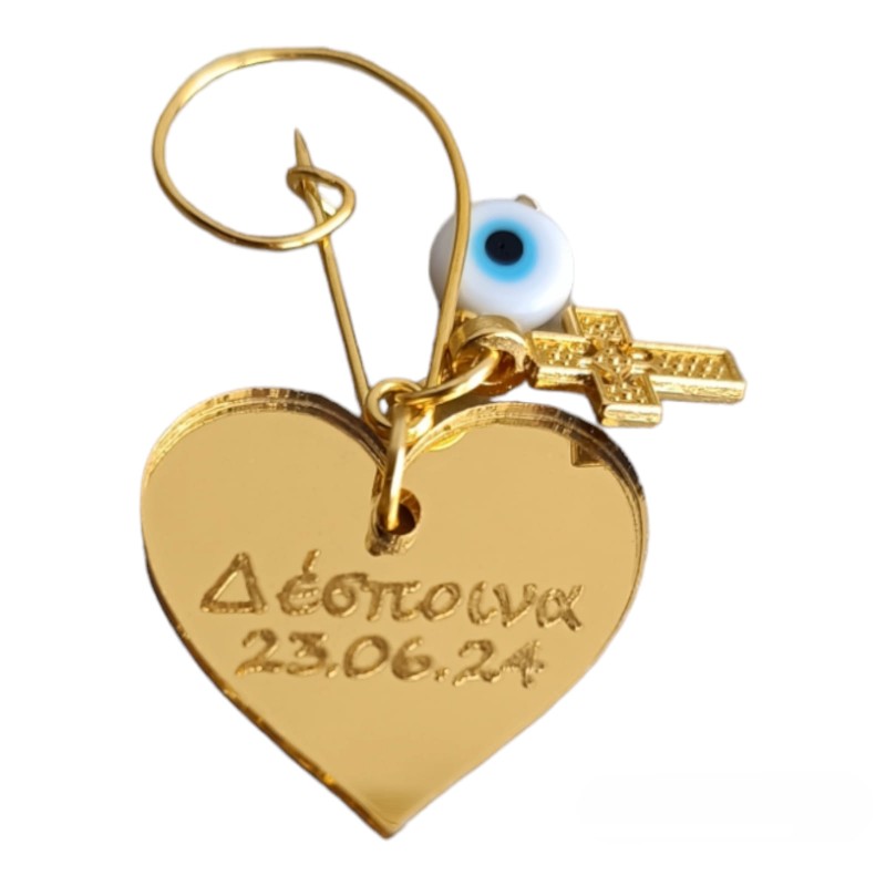 Ετικέτες: Φυλαχτό με το όνομα του παιδιού Καρδιά από plexiglass με όνομα και ημερομηνία Μάτι και Σταυρός Διάσταση καρδιάς 3 εκ