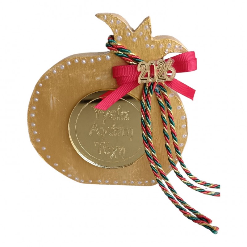 Ετικέτες: Φέτος χαρίστε τύχη, ευημερία και λάμψη στον χώρο σας με το μοναδικό χειροποίητο γούρι–ρόδι, σε εντυπωσιακό χρυσό χρώμα και λεπτομέρειες από χρυσό πλεξιγκλάς. Κάθε κομμάτι είναι δημιουργημένο με προσοχή στη λεπτομέρεια και διαθέτει επάνω χαραγμένες αγαπημένες ευχές, για να γεμίσει το σπίτι ή το γραφείο σας με θετική ενέργεια για όλη τη νέα χρονιά. Χαρακτηριστικά προϊόντος: Χειροποίητη κατασκευή χρυσό ρόδι με χρυσές λεπτομέρειες από premium πλεξιγκλάς Με χαραγμένες ευχές όπως “Υγεία”, “Αγάπη”, “Τύχη”, Ιδανικό για δώρο σε φίλους, οικογένεια ή συνεργάτες Υπέροχο διακοσμητικό για το σαλόνι, το γραφείο ή την είσοδο του σπιτιού Ανανεώστε τον χώρο σας με μια πινελιά γιορτινής κομψότητας ή προσφέρετε ένα δώρο με νόημα που θα μείνει αξέχαστο.