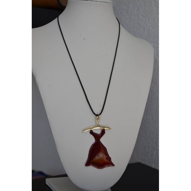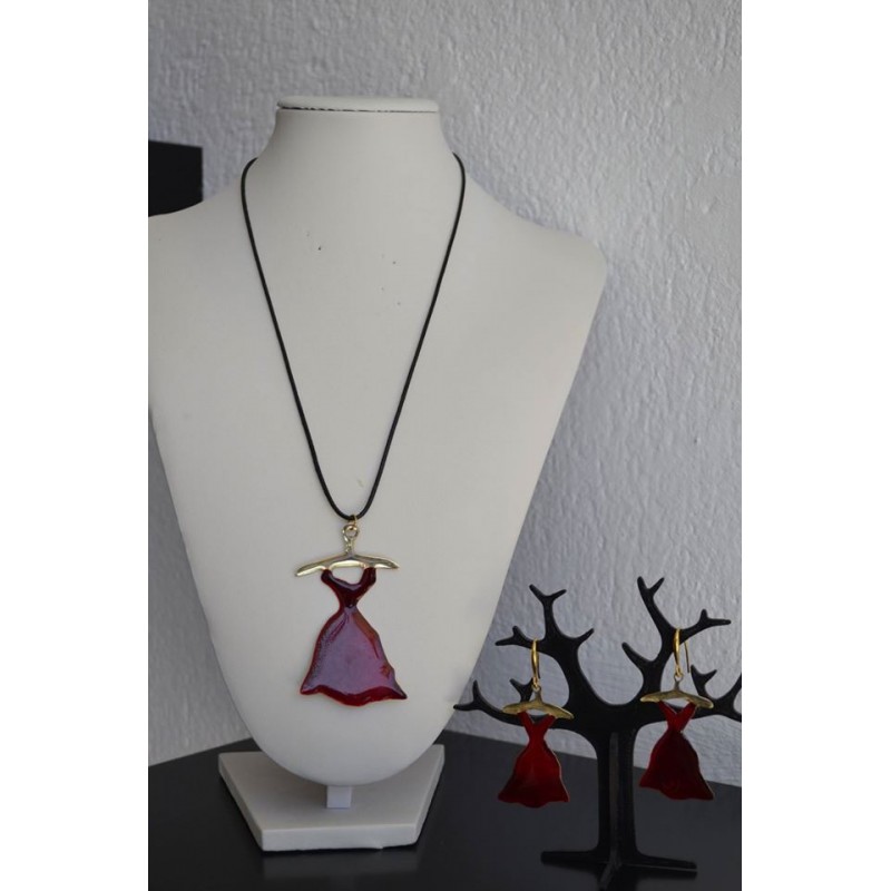 Σκουλαρίκια και κολιέ με χειροποίητο φόρεμα από ορείχαλκο σε κόκκινο χρώμα
