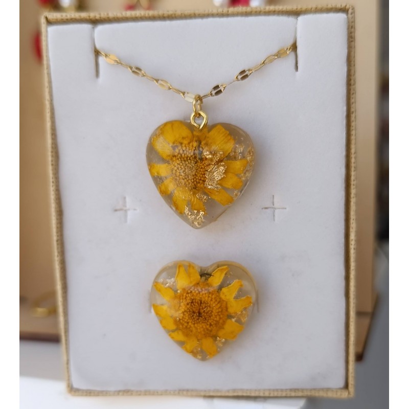 Ετικέτες: Δαχτυλίδι και κολιέ με αληθινή κίτρινη μαργαρίτα Ατσάλινη χρυσή αλυσίδα το μήκος της είναι 45 εκ με την προέκταση Διάσταση καρδιάς 2, 5 εκ Δαχτυλίδι με βέργα ατσάλινη το μέγεθος του αυξομειώνεται Η καρδιά είναι κι αυτή στα 2, 5 εκ