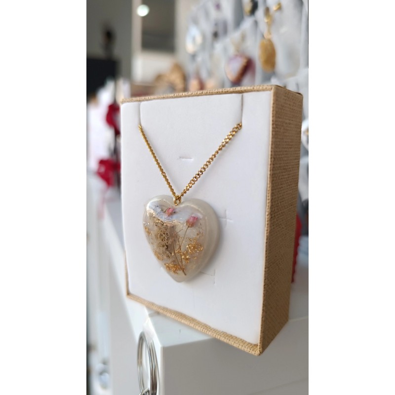 Ετικέτες: Αυτό το μενταγιόν είναι μοναδικό και όχι μόνο γιατί είναι χειροποίητο. Γιατί τα λουλούδια που έχει μέσα είναι αληθινά! Ροζ γυψοφίλη και (Limonium) Γνωστό και ως "λουλούδι της αιωνιότητας", και γυψοφύλλη ροζ Ατσάλινη χρυσή αλυσίδα 42 εκ Διάσταση καρδιάς 3, 5Χ3 εκ