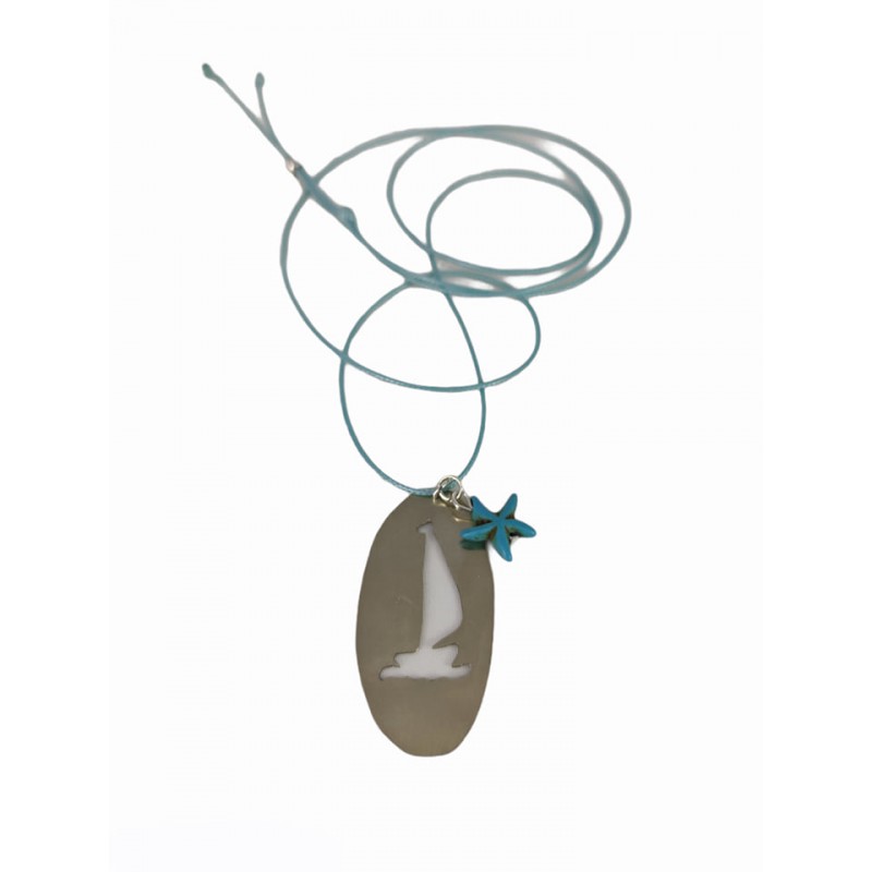Ετικέτες: Κολιέ μακρύ στο λαιμό με μέταλλο αλπακά χειροποίητο. Καράβι με ημιπολύτιμο λίθο αστέρια με μπλε χαολιτη. Μπλε δερμάτινο κορδόνι 85 cm το μάκρος του δερμάτινου κορδονιού