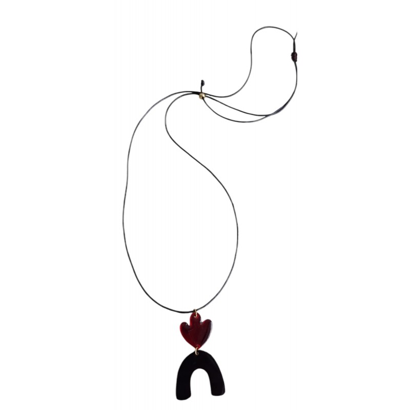 Χειροποίητο κολιέ γεωμετρικό σχήμα με δερμάτινο κορδόνι σε μαύρο χρώμα