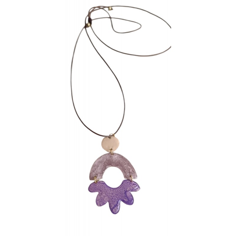 Χειροποίητο κολιέ γεωμετρικό σχήμα με δερμάτινο κορδόνι