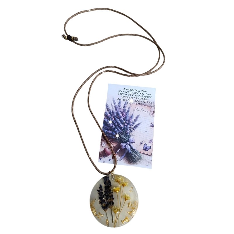 Χειροποίητο κολιέ με αποξηραμένη λεβάντα και Γλίξια