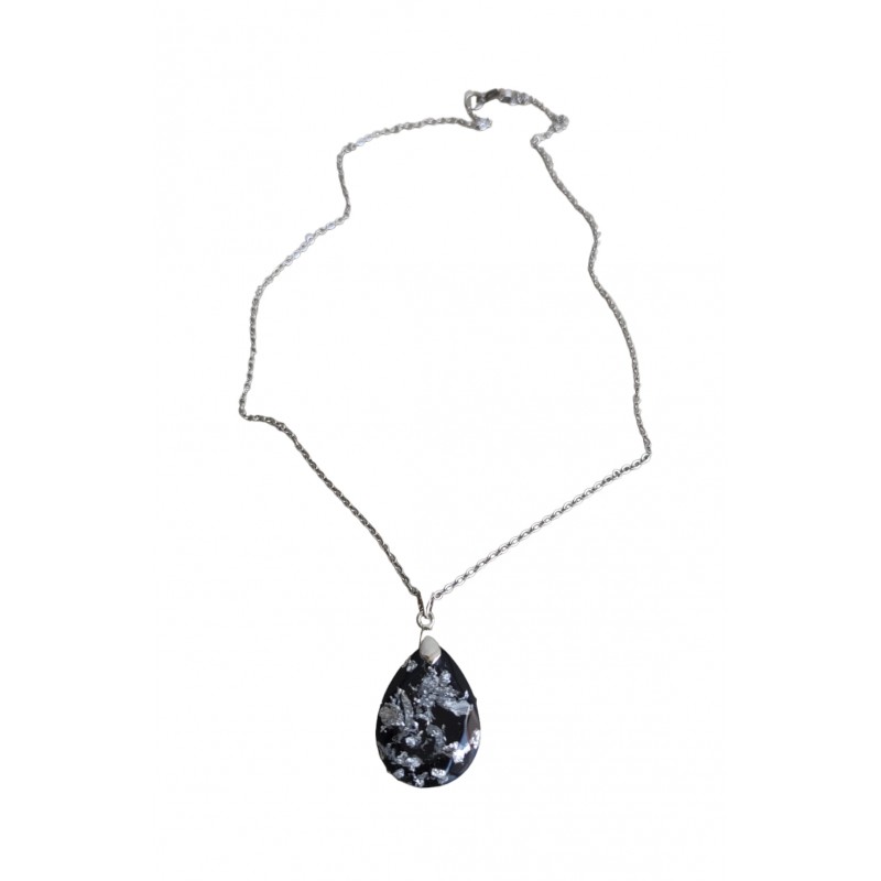 Μενταγιόν με φύλλα ασημιού και μαύρο χρώμα, δάκρυ