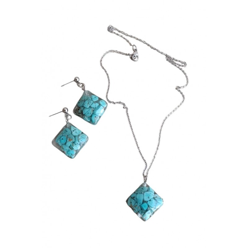 Ετικέτες: Κολιέ με ημιπολύτιμο λίθο μπλε χαολίτη σε σχήμα ρόμβου Τα μεταλλικά στοιχεία είναι ατσάλινα Διάσταση ρόμβου 2 εκ Μπορείς να επιλέξεις και τα αντίστοιχα σκουλαρίκια