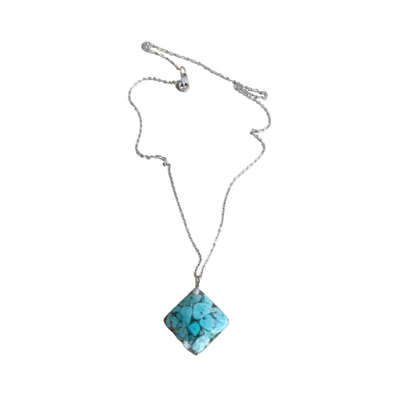 Κολιέ με ημιπολύτιμο λίθο μπλε χαολίτη σε σχήμα ρόμβου