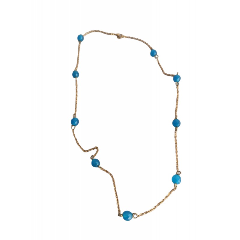 Χειροποίητο κολιέ με χρυσή ατσάλινη αλυσίδα και μπλε αχάτη, διάσταση 42 εκ