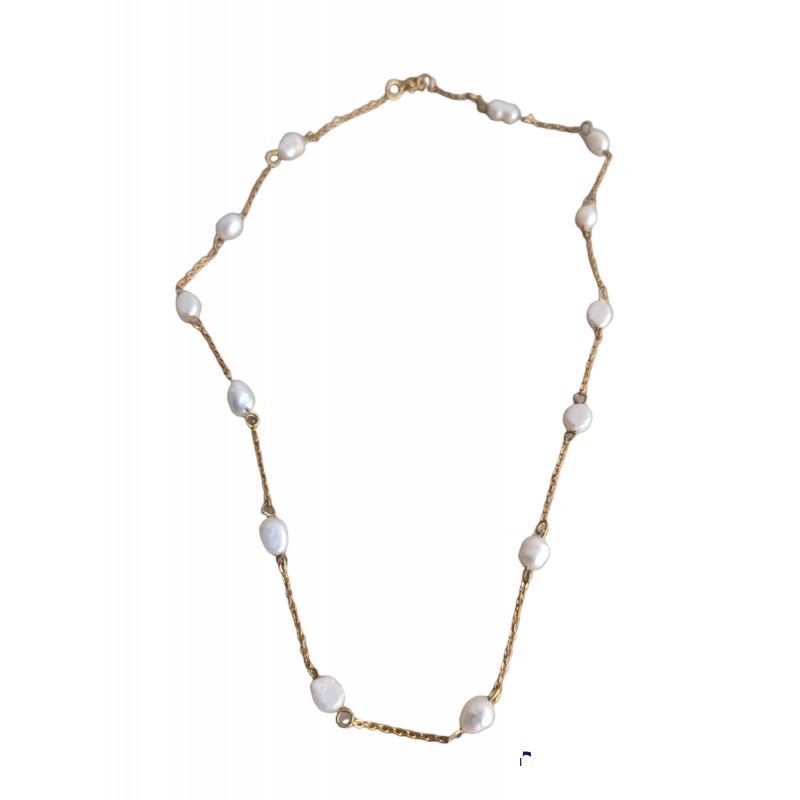 Χειροποίητο κολιέ με χρυσή ατσάλινη αλυσίδα και μαργαριτάρια, διάσταση 42 εκ