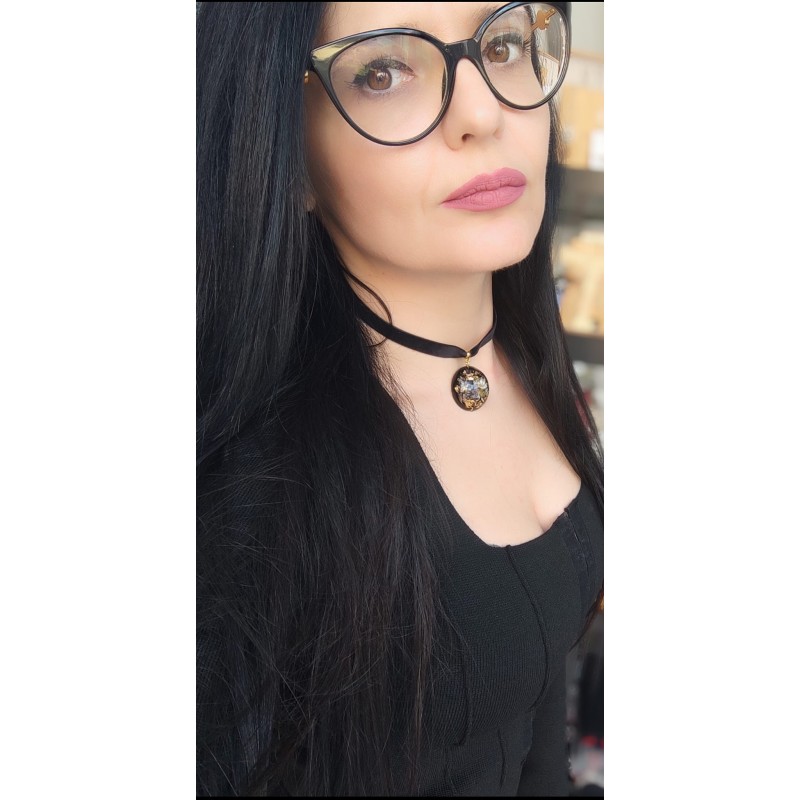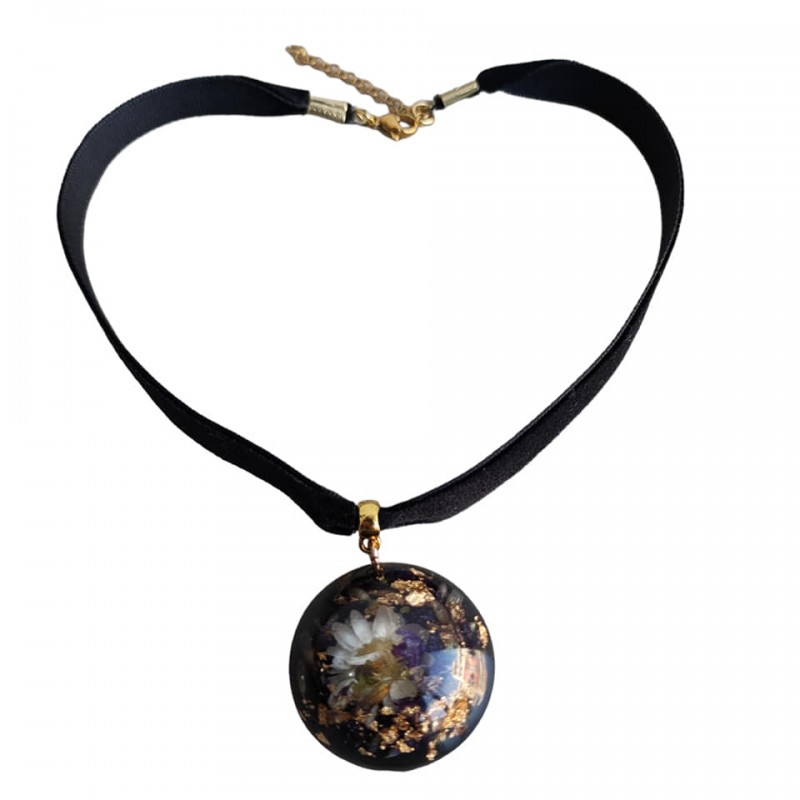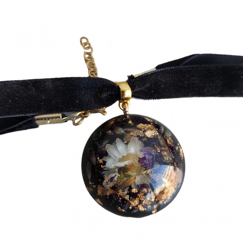 Χειροποίητο τσόκερ με βελούδινο κορδόνι και μενταγιόν με αληθινά λουλούδια