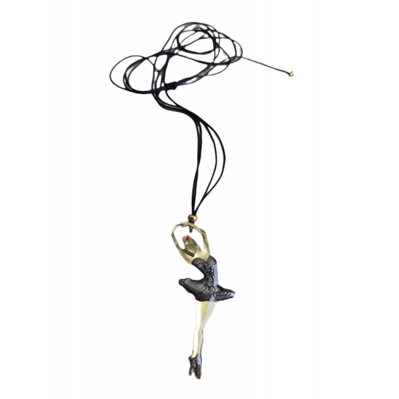 Χειροποίητο κολιέ από μέταλλο ορείχαλκου βαμμένο με σμάλτο και υγρό γυαλί, μπαλαρίνα, μαύρο κορδόνι το μέγεθος του αυξομειώνεται