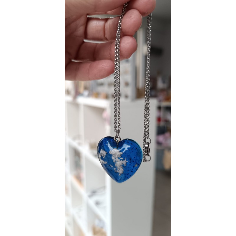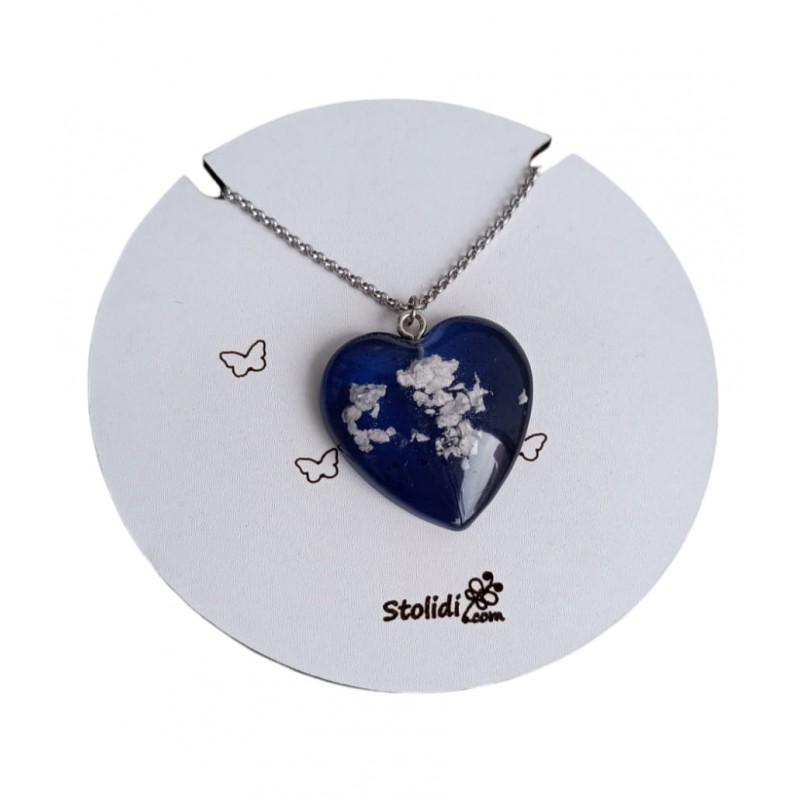 Χειροποίητο μενταγιόν με ουρανό σε καρδιά και ατσάλινη ασημένια αλυσίδα