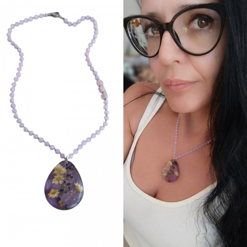 Ετικέτες: Χειροποίητο κολιέ με αποξηραμένη λεβάντα και Γλίξια Με κρύσταλλα σε μωβ χρώμα Μήπως αλυσίδας απο κρύσταλλα 45 εκ