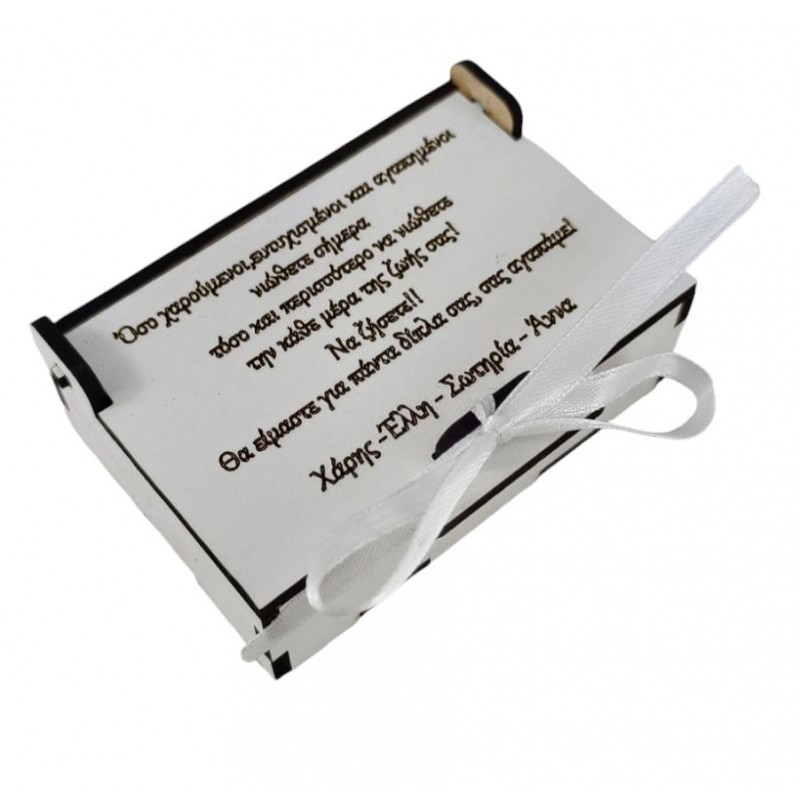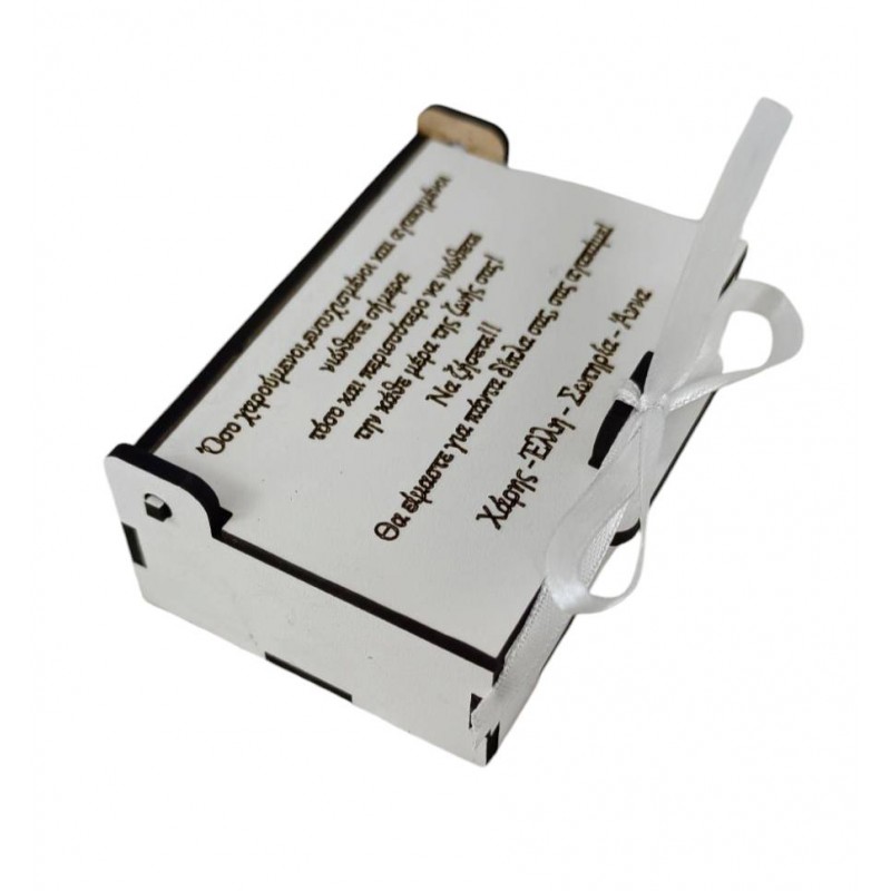 Ετικέτες: Ξέχασε τον κλασικό φάκελο! Χάρισε τα χρήματα του γάμου μέσα σε ένα ξύλινο κουτί με τη δική σου ευχή χαραγμένη στο καπάκι. Ένα δώρο με ψυχή που θα κρατήσει το ζευγάρι για πάντα! Πλάτος 9 εκ Μπορεί να γίνει σε διάφορες διαστάσεις