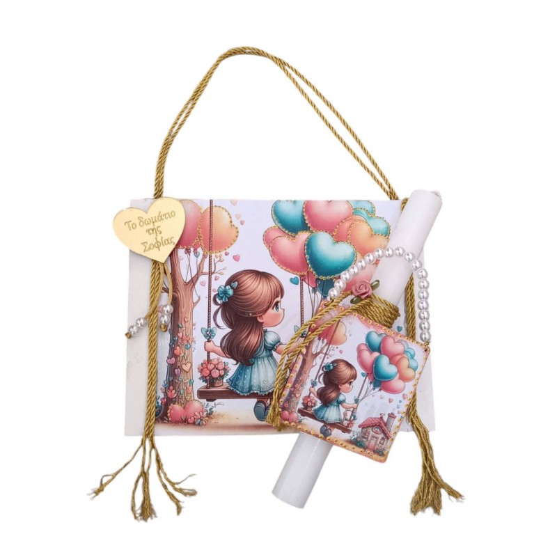 Χειροποίητο πασχαλινό πακέτο που περιλαμβάνει λαμπάδα και ταμπελάκι για το παιδικό δωμάτιο