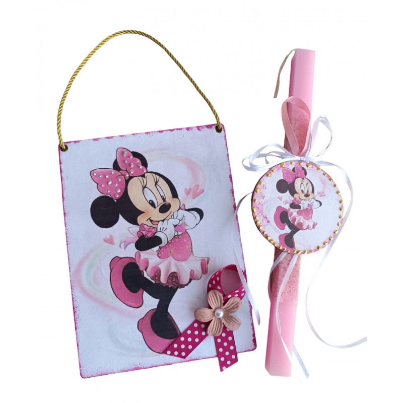 Λαμπάδα με κορνιζάκι και θέμα την minnie mouse