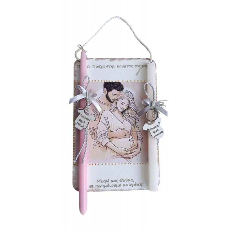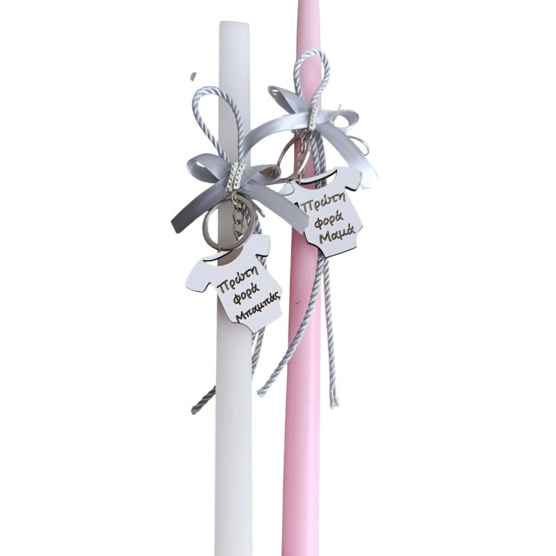 Κορνιζάκι που μπορείτε μετά να το κρεμάσετε και δύο λαμπάδες με μπρελόκ η κάθε μία