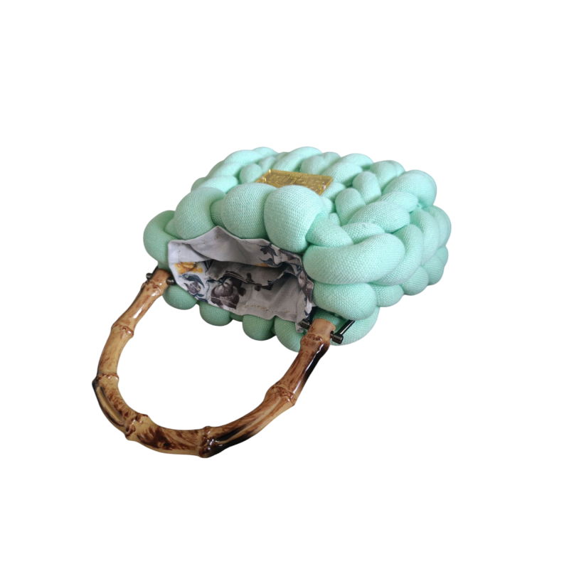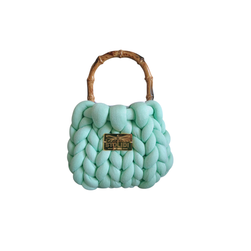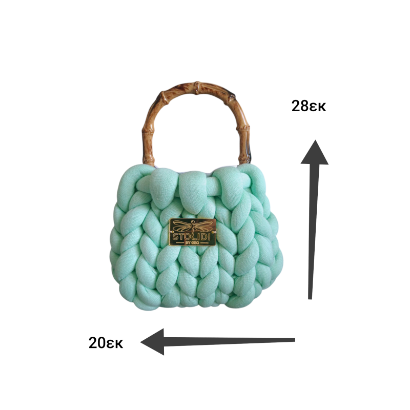 Χειροποίητη με υπέροχο, αφράτο πλεκτό νήμα, διαθέτει λουστραρισμένη χειρολαβή από φυσικό bamboo για μια κομψή, εξωτική πινελιά. Διατίθεται σε δύο μοναδικές αποχρώσεις – εκρού και φιστικί, για να διαλέξεις αυτή που σου ταιριάζει περισσότερο.