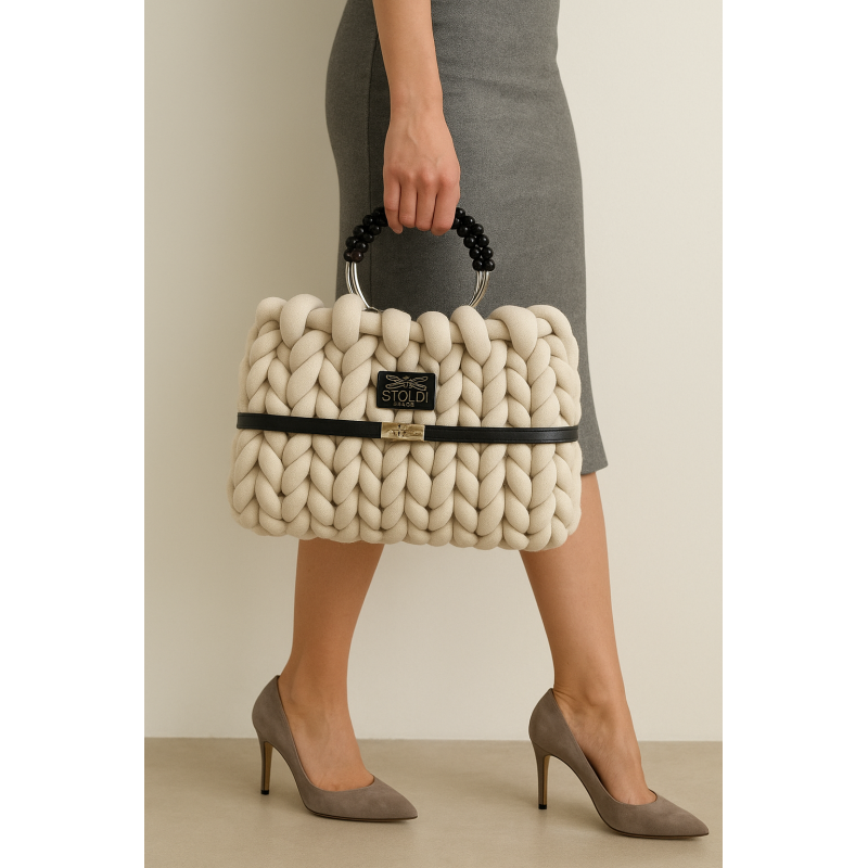 Ετικέτες: Χειροποίητη τσάντα Πλεκτή τσάντα Chunky bag Μαύρες πέρλες Ασημένια μεταλλικά στοιχεία Γυναικεία τσάντα Fashion accessories Handmade bag STOIDI by Geo