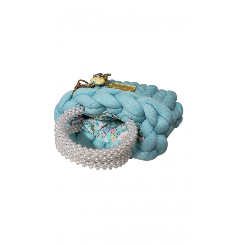 Marshmallow τσάντα σε πετρολ χρώμα με χερούλι λευκές πέρλες