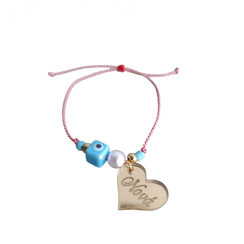 Ετικέτες: Βραχιόλι Μάρτης με καρδιά από πλεξιγκλας που λεει νονά Μπλε μάτι και πέρλα
