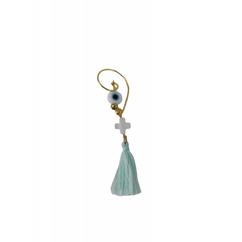 Ετικέτες: Μαρτυρικό βάφτισης παραμάνα χρυσή, το κλειδί του σολ με Σταυρό από φίλντισι, μάτι και φούντα Δεν έχει ελάχιστη παραγγελία