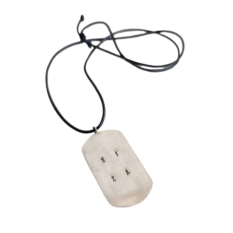 Ετικέτες: Μεταλλική ταυτότητα με αρχικά, μαύρο δερμάτινο κορδόνι που αυξομειώνεται