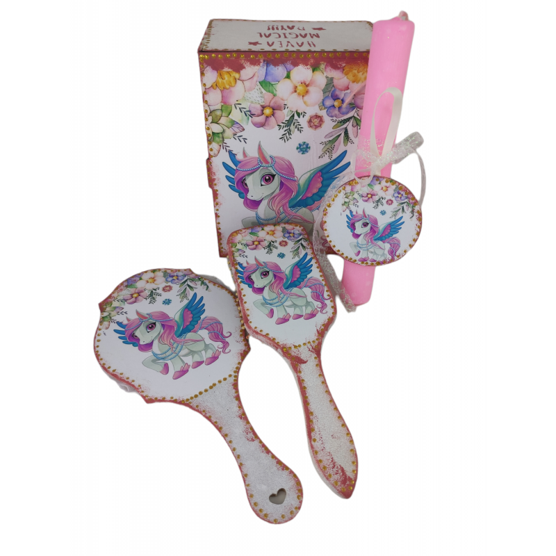 Μονόκερος πασχαλινό σετ με κουτί χτένα καθρέφτη και αρωματική λαμπάδα